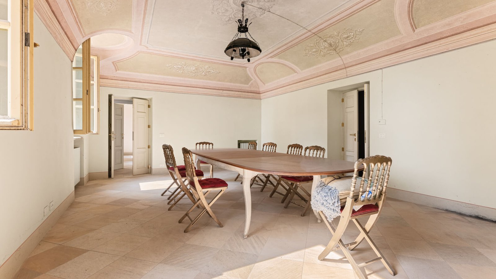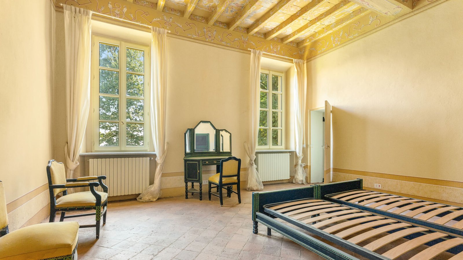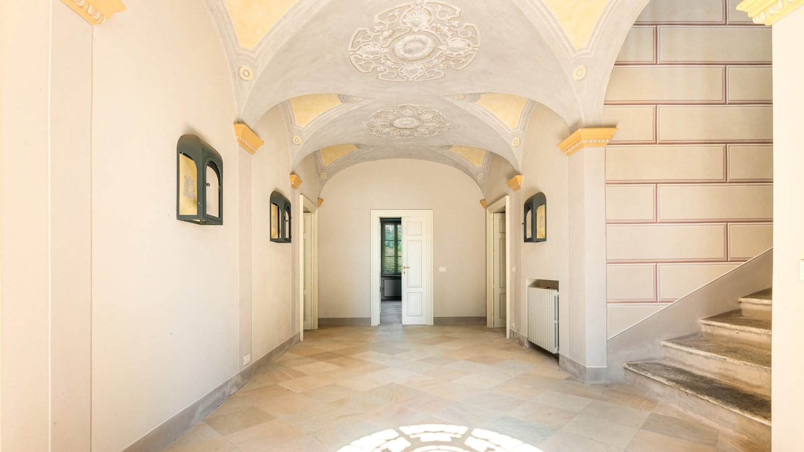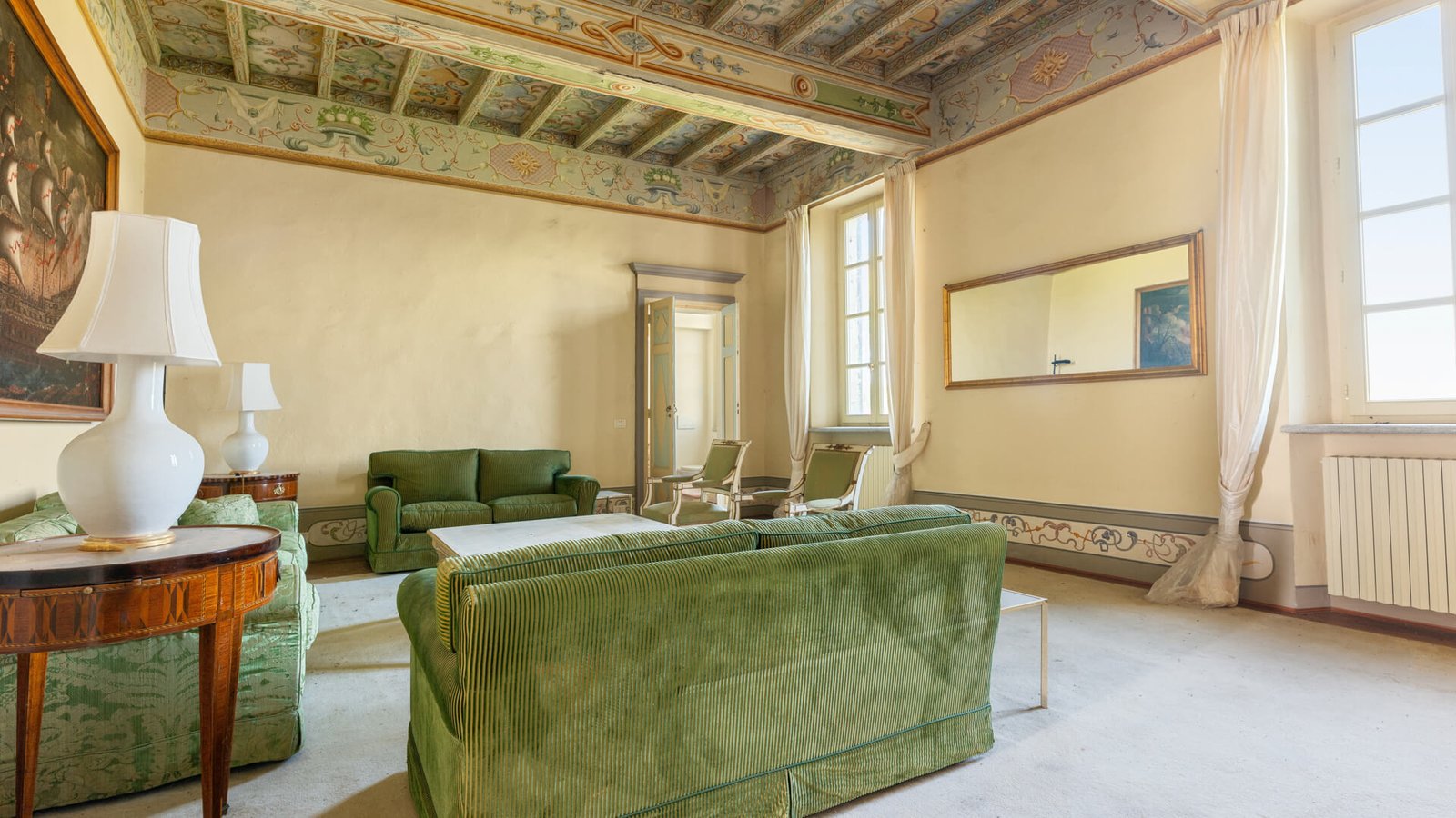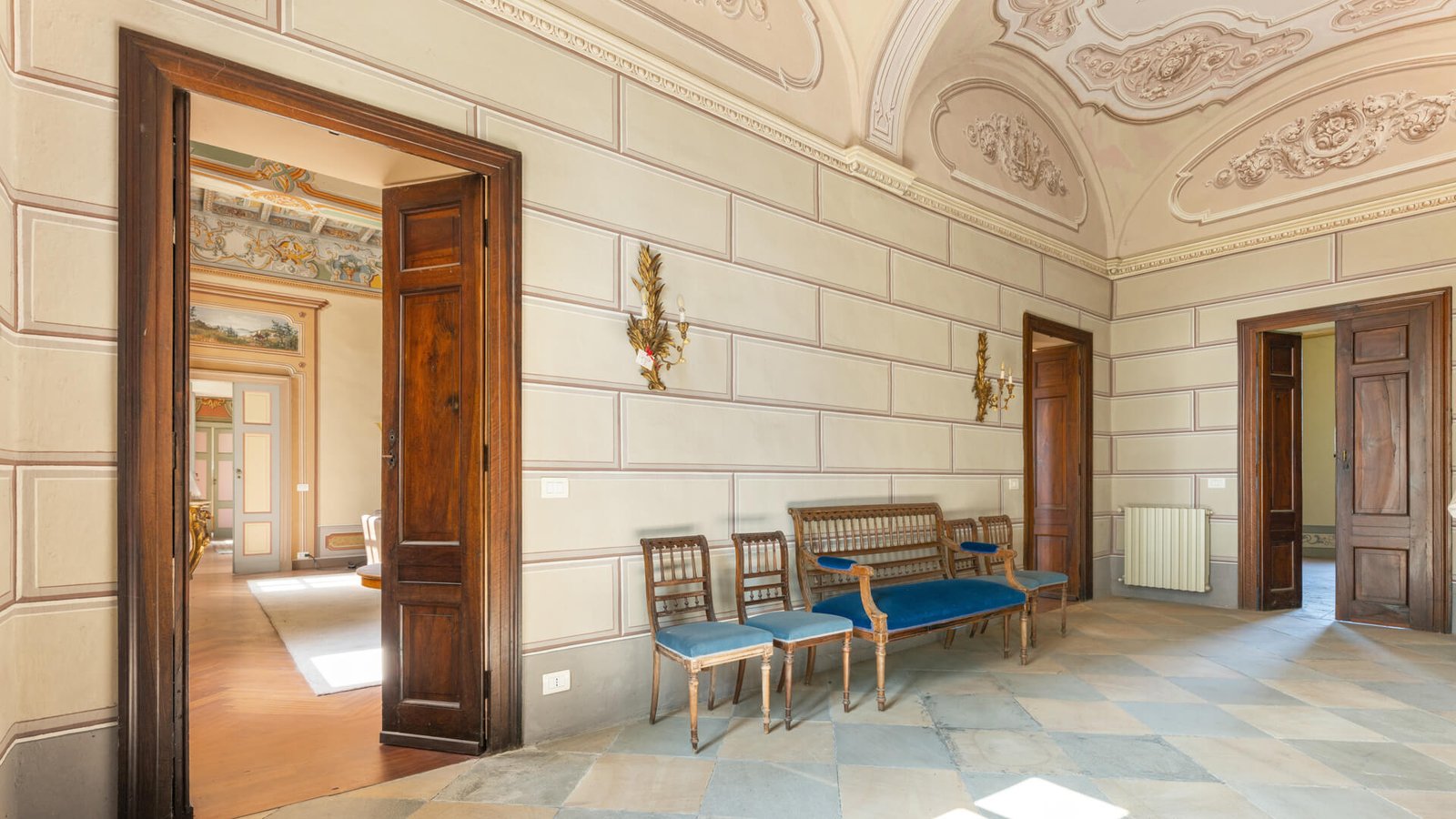 La prima unità , risalente al 1756, è stata recentemente ristrutturata preservando le caratteristiche storiche che ne esaltano il fascino senza tempo. Al piano terra troviamo una spaziosa cucina, un salone doppio, una grande sala da pranzo, una camera da letto e due bagni. La scala signorile conduce al primo piano, dove i soffitti a cassettoni affrescati arricchiscono l’ambiente.