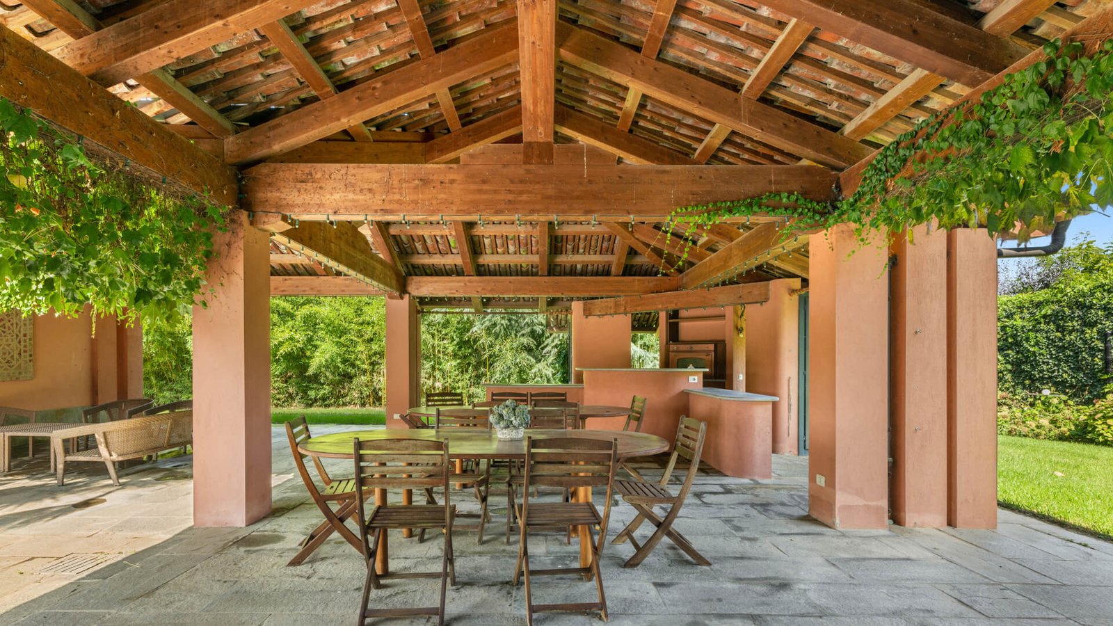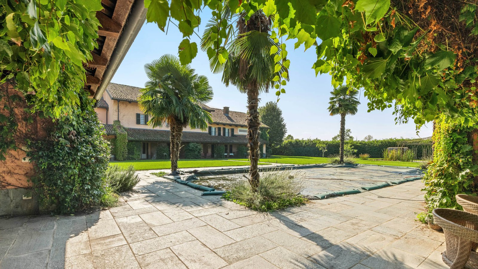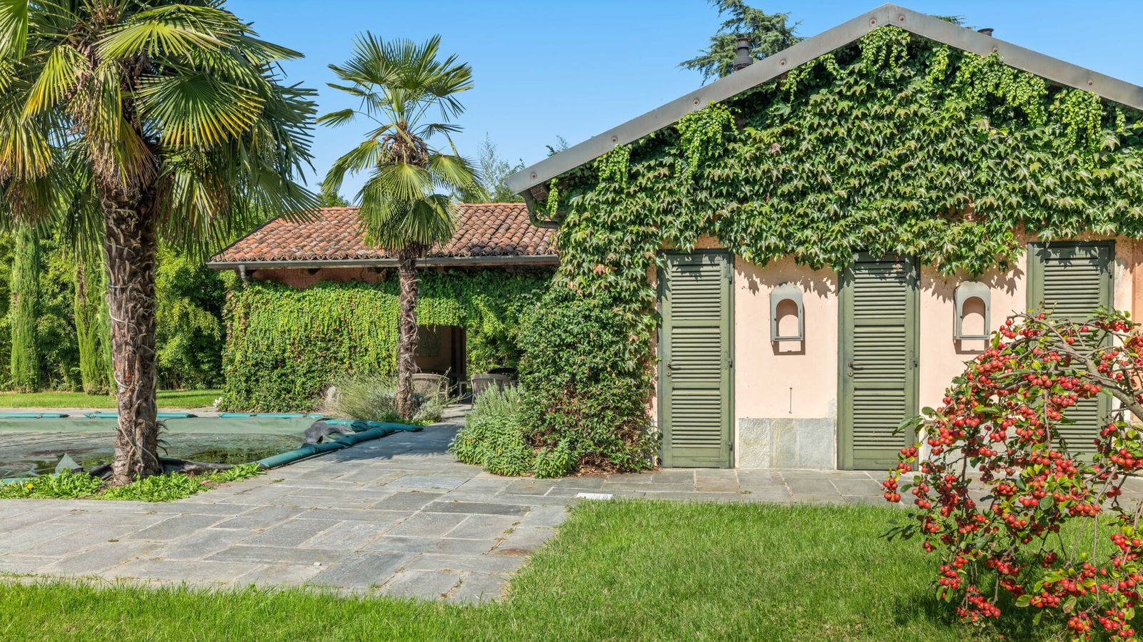 Lo spazio esterno è altrettanto straordinario, sono presenti un’ampia piscina, uno specchio d’acqua con patio e gazebo in metallo e una tettoia perfetta per pranzi o cene all’aperto, con una piccola cucina annessa. Una villa che rappresenta un connubio perfetto tra storia e modernità , in un contesto esclusivo e raffinato.