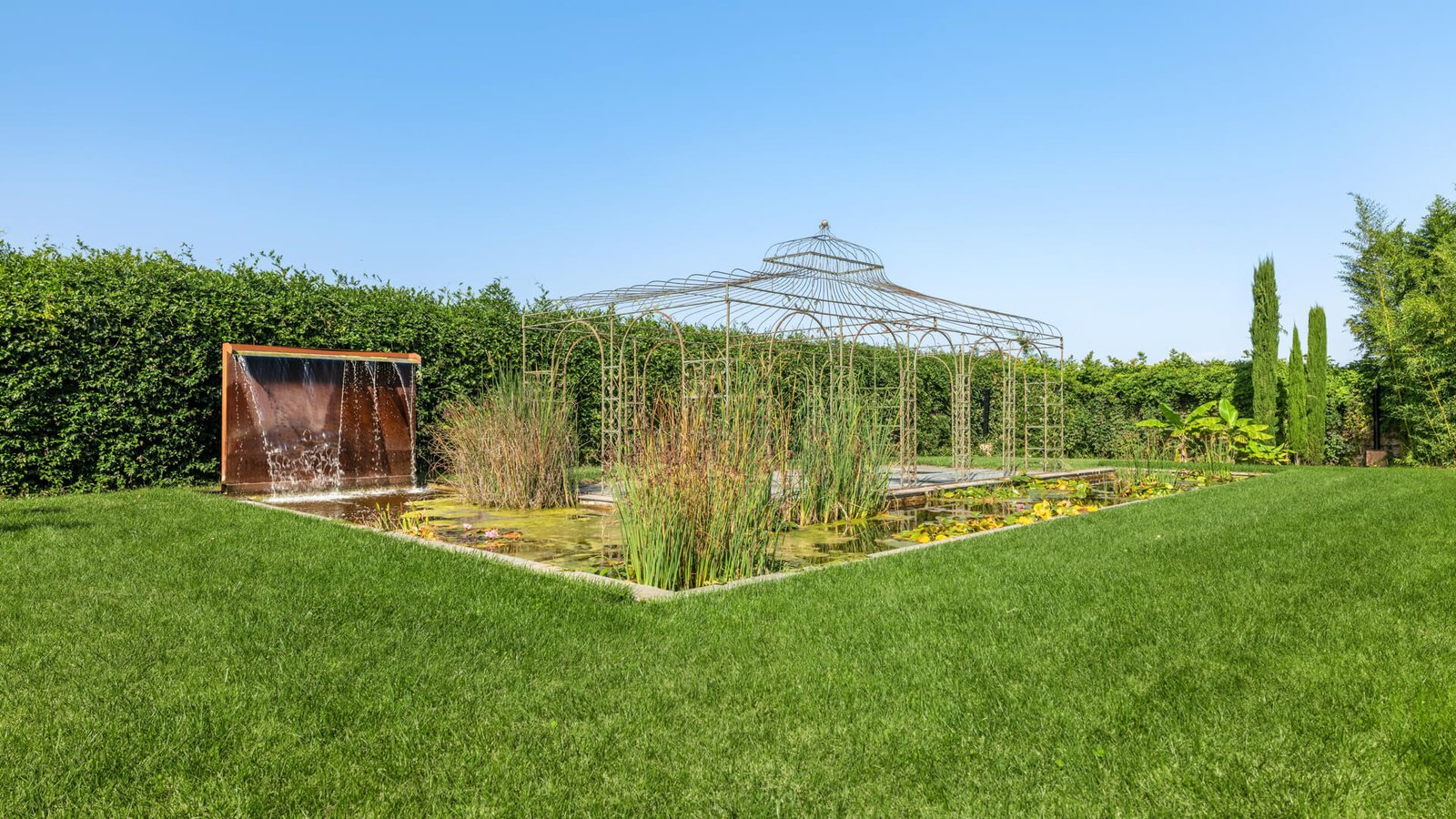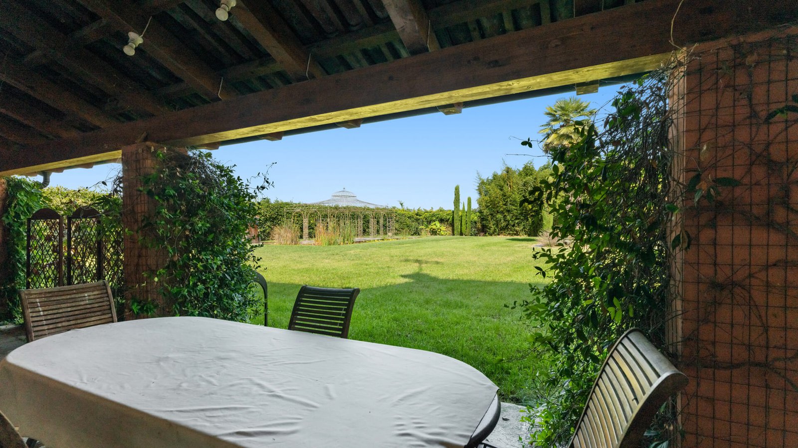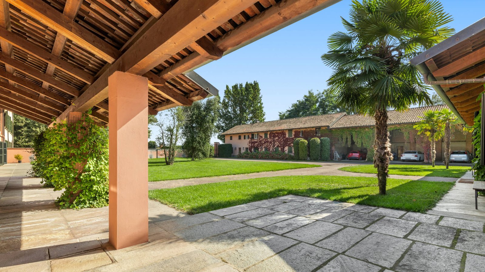 Lo spazio esterno è altrettanto straordinario, sono presenti un’ampia piscina, uno specchio d’acqua con patio e gazebo in metallo e una tettoia perfetta per pranzi o cene all’aperto, con una piccola cucina annessa. Una villa che rappresenta un connubio perfetto tra storia e modernità , in un contesto esclusivo e raffinato.