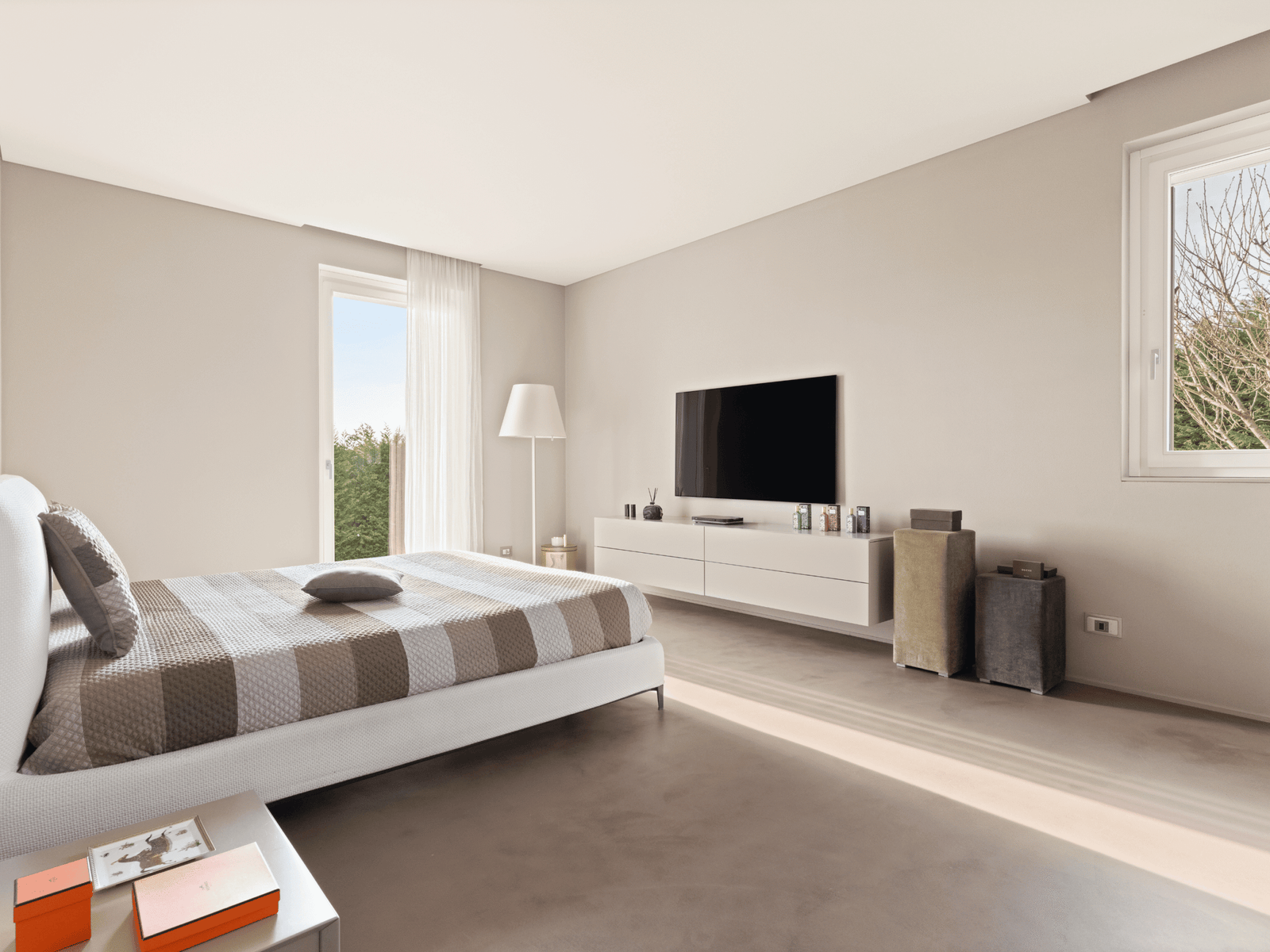 Al piano terra si trova inoltre la camera padronale, un vero rifugio di comfort e stile, completa di cabina armadio e bagno en suite dal design rigoroso. Gli ambienti, arredati con materiali di pregio e dettagli curati, sono studiati per garantire massima eleganza e funzionalità .