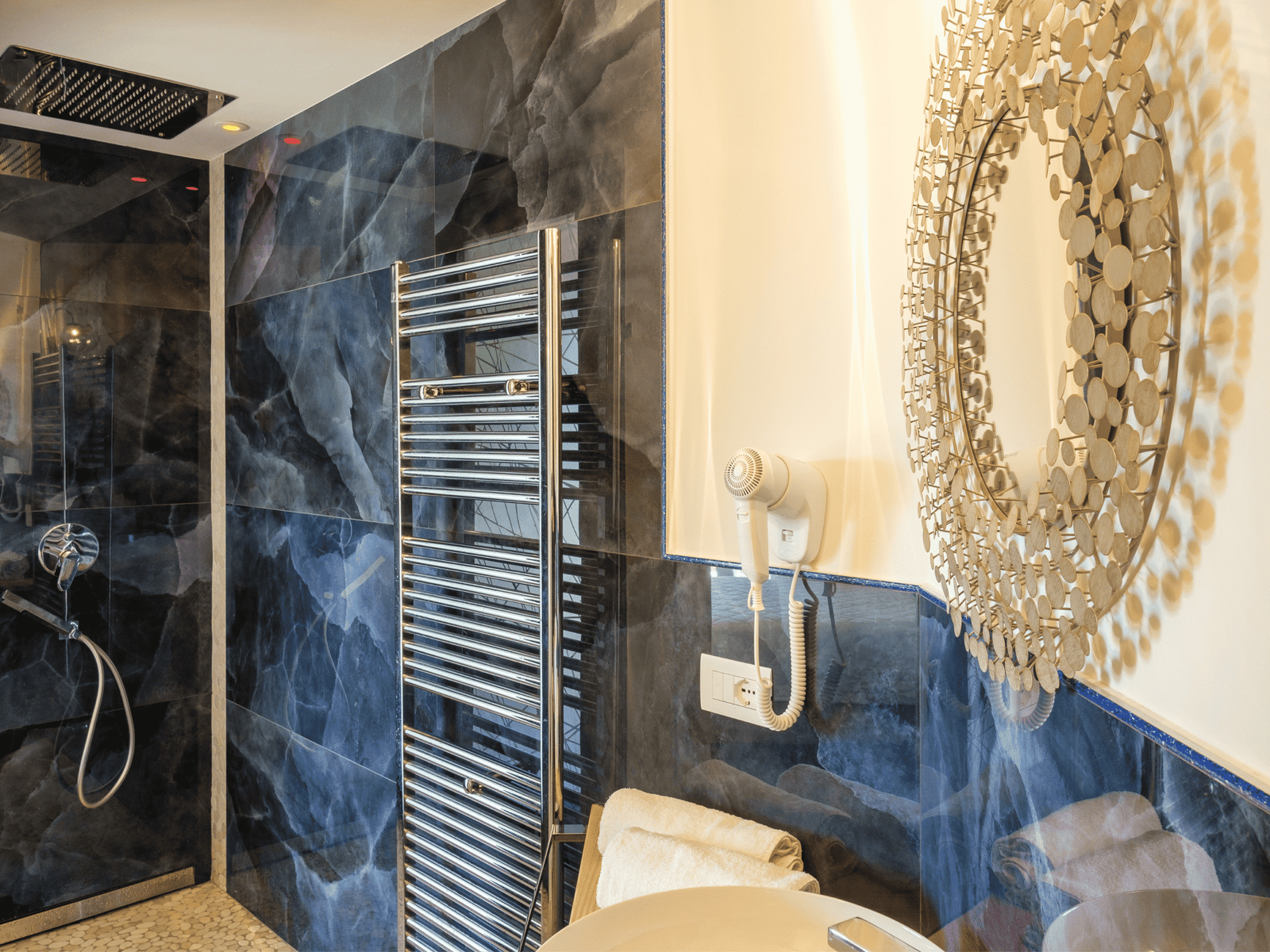 La zona notte comprende quattro camere da letto luminose e tre bagni moderni, distribuiti in modo funzionale per garantire il massimo comfort in ogni stagione.