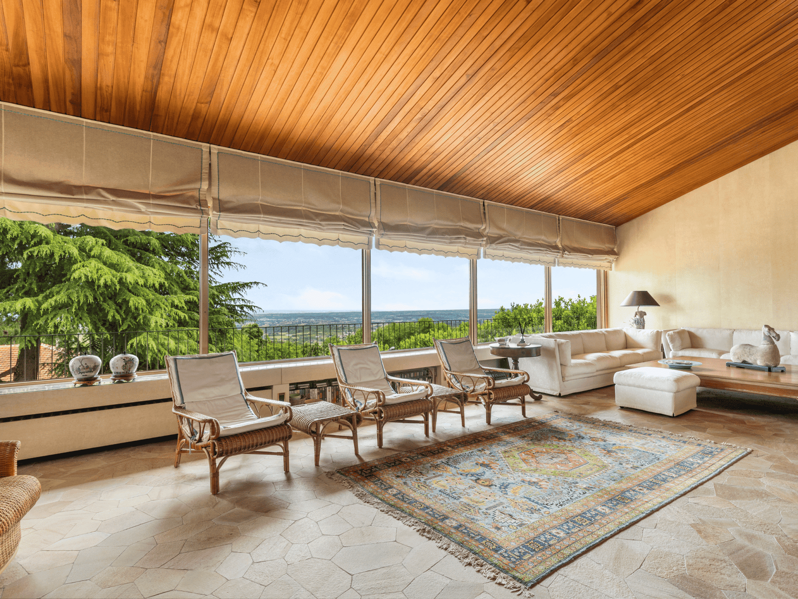 Distribuita su tre livelli, la villa offre una zona giorno di rappresentanza con camino e grandi vetrate, ambienti luminosi e generosi, pensati per la vita familiare e per ricevere ospiti.