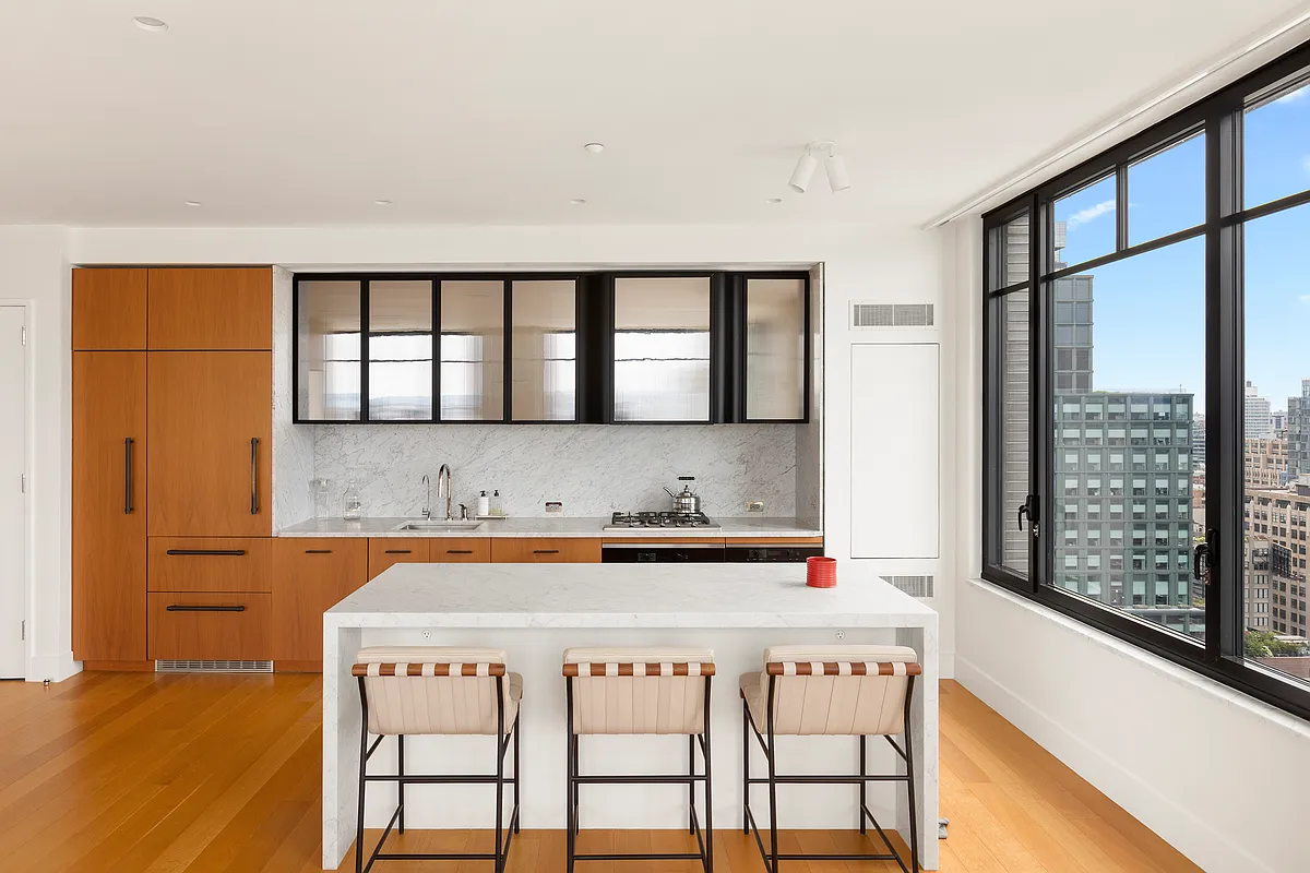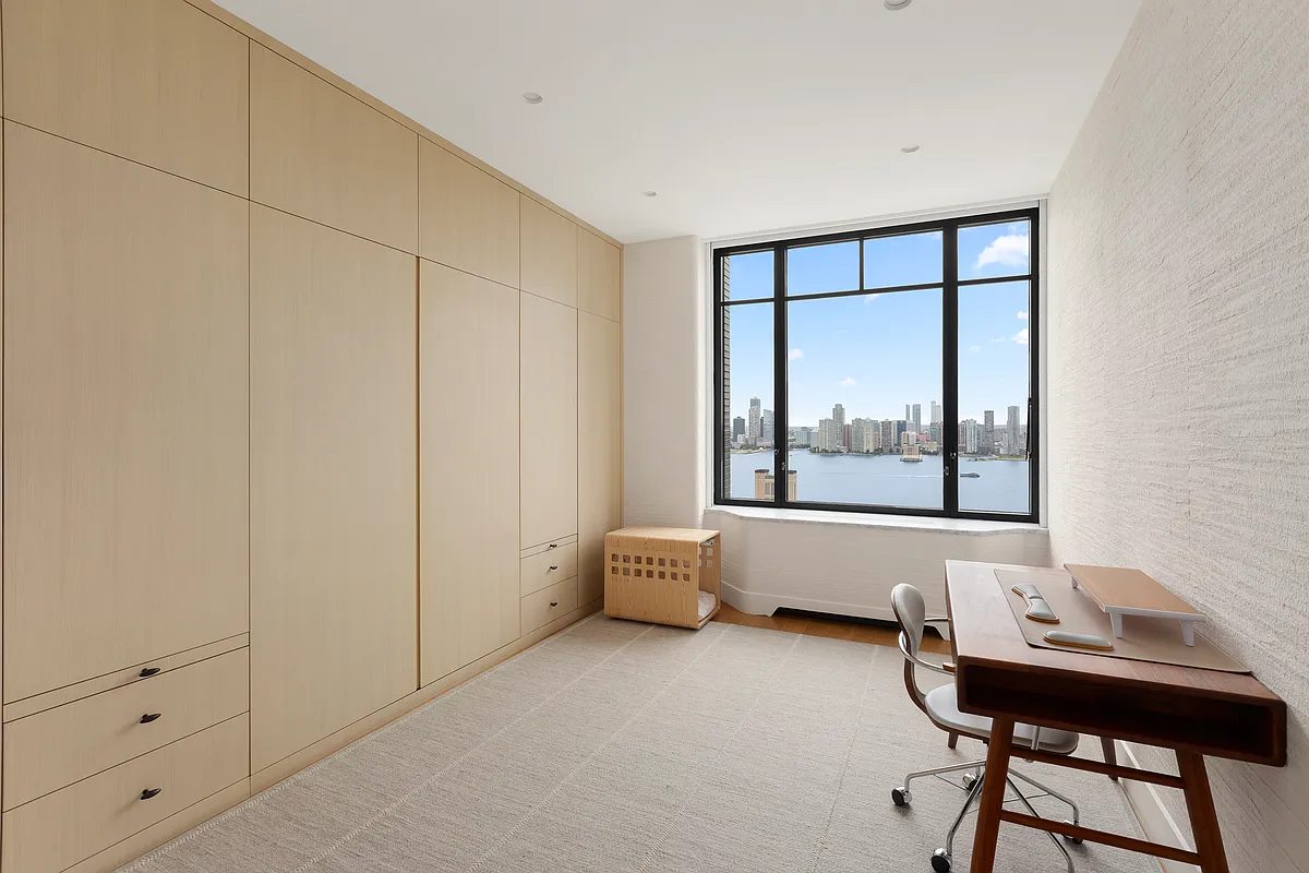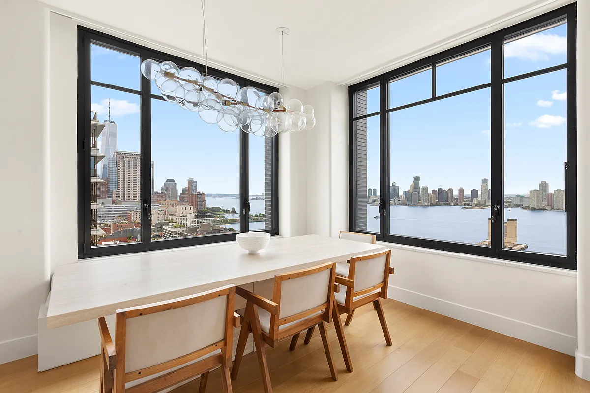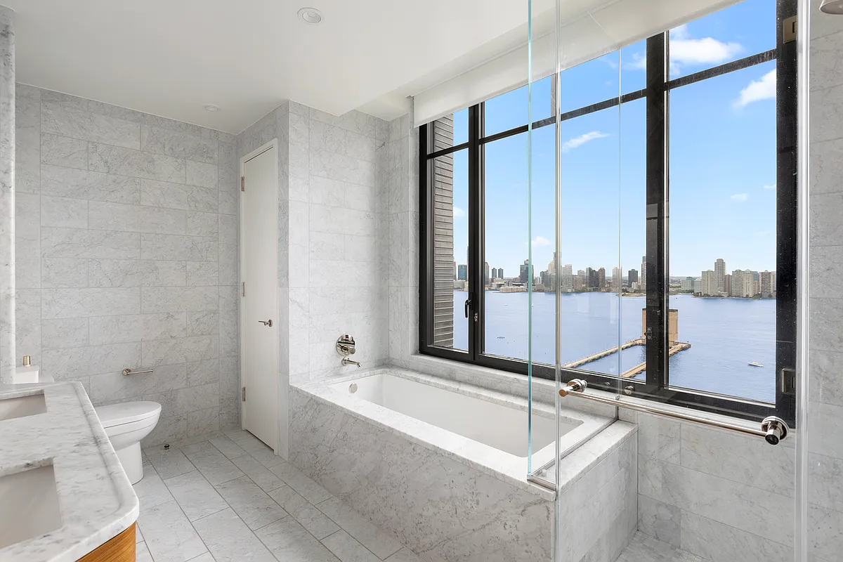 Al 27° piano di Greenwich West (110 Charlton St), elegante trilocale di circa 150 m² (1.617 ft²) con 2 camere e 2,5 bagni, impreziosito da un progetto di Marina Hanisch Interiors e da affacci spettacolari sul fiume Hudson e sullo skyline downtown. L’abitazione include unità di storage privata ed è stata rifinita con dettagli su misura che elevano comfort e stile.