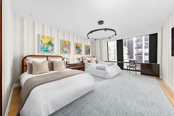 Situato al 24° piano dell’iconica torre residenziale 53 West 53, questo elegante trilocale con due camere da letto e due bagni e mezzo offre un’esperienza abitativa unica nel cuore di Manhattan. Con una metratura di circa 291 m² (3.131 ft²), la residenza 24A è avvolta da vedute aperte sulla città e sullo skyline, con ambienti ampi pensati per valorizzare luce, comfort e prestigio.