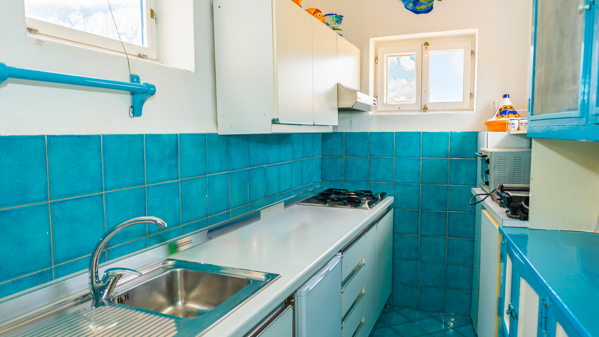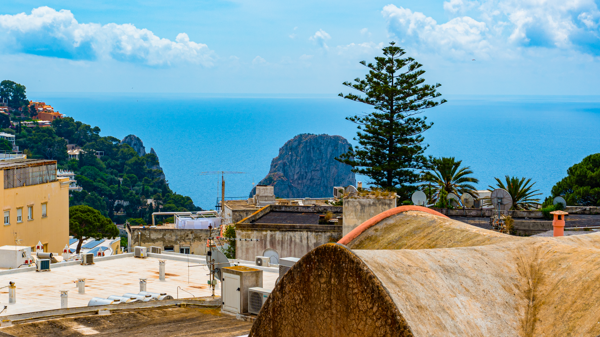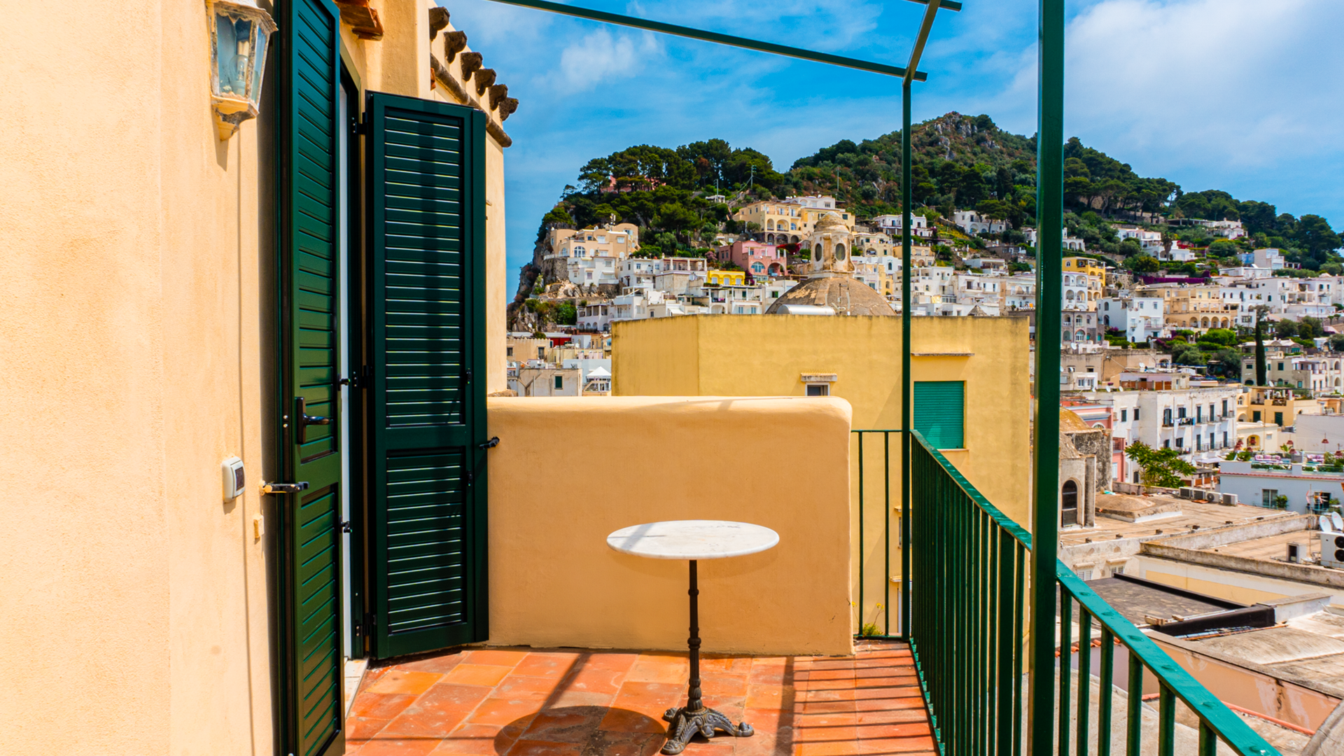 Il vero gioiello di questa dimora è il grande terrazzo di 50 mq che si affaccia sulla Piazzetta. Qui, puoi vivere il fermento dell’isola, osservando la vita che scorre sotto di te, con il via vai di persone, il suono delle risate e la musica che riempie l’aria. Questo spazio all’aperto diventa il tuo angolo di paradiso, perfetto per colazioni all’alba, cene sotto le stelle o semplicemente per rilassarti con un bicchiere di vino mentre il sole tramonta dietro i famosi faraglioni, che si stagliano maestosi all’orizzonte.