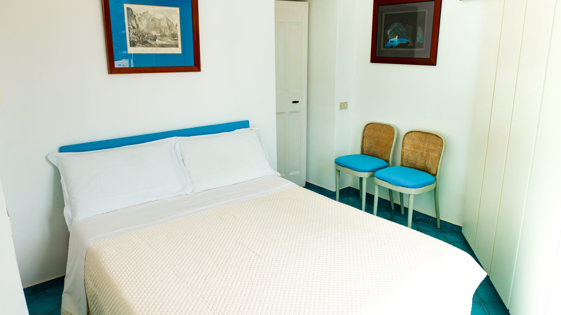 Gli interni dell’appartamento sono una perfetta combinazione di eleganza e comfort. Due ampie camere matrimoniali, ognuna con il proprio bagno privato, offrono un rifugio di tranquillità e privacy. Le camere sono pensate per garantire il massimo del riposo dopo una giornata trascorsa a esplorare l’isola.