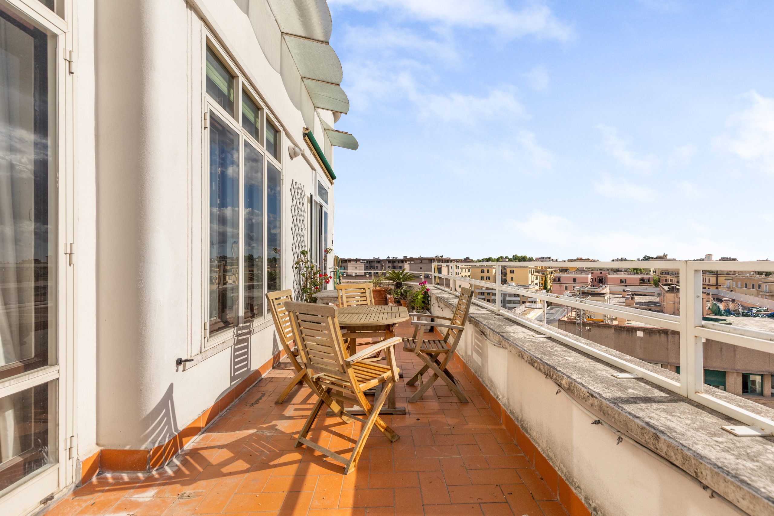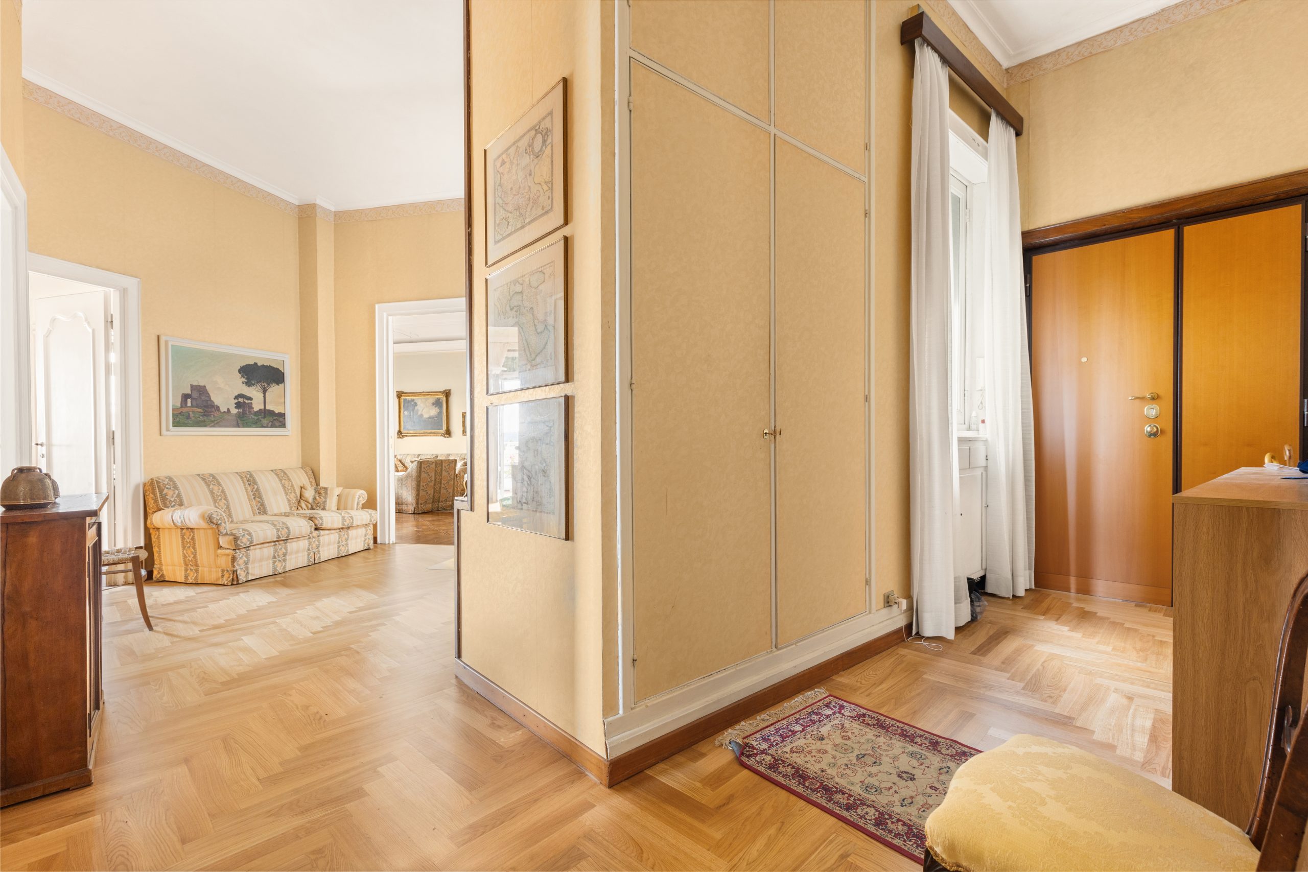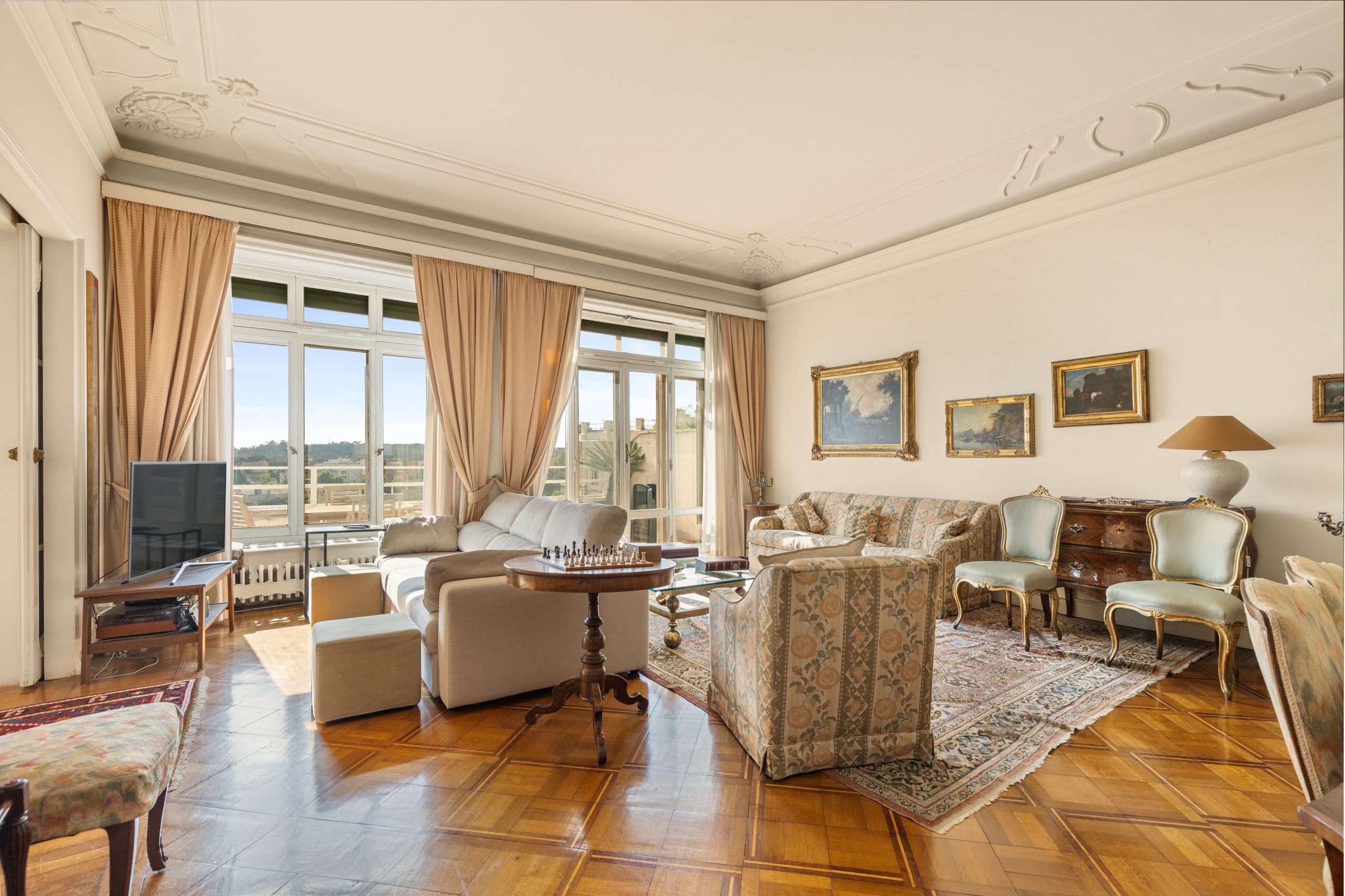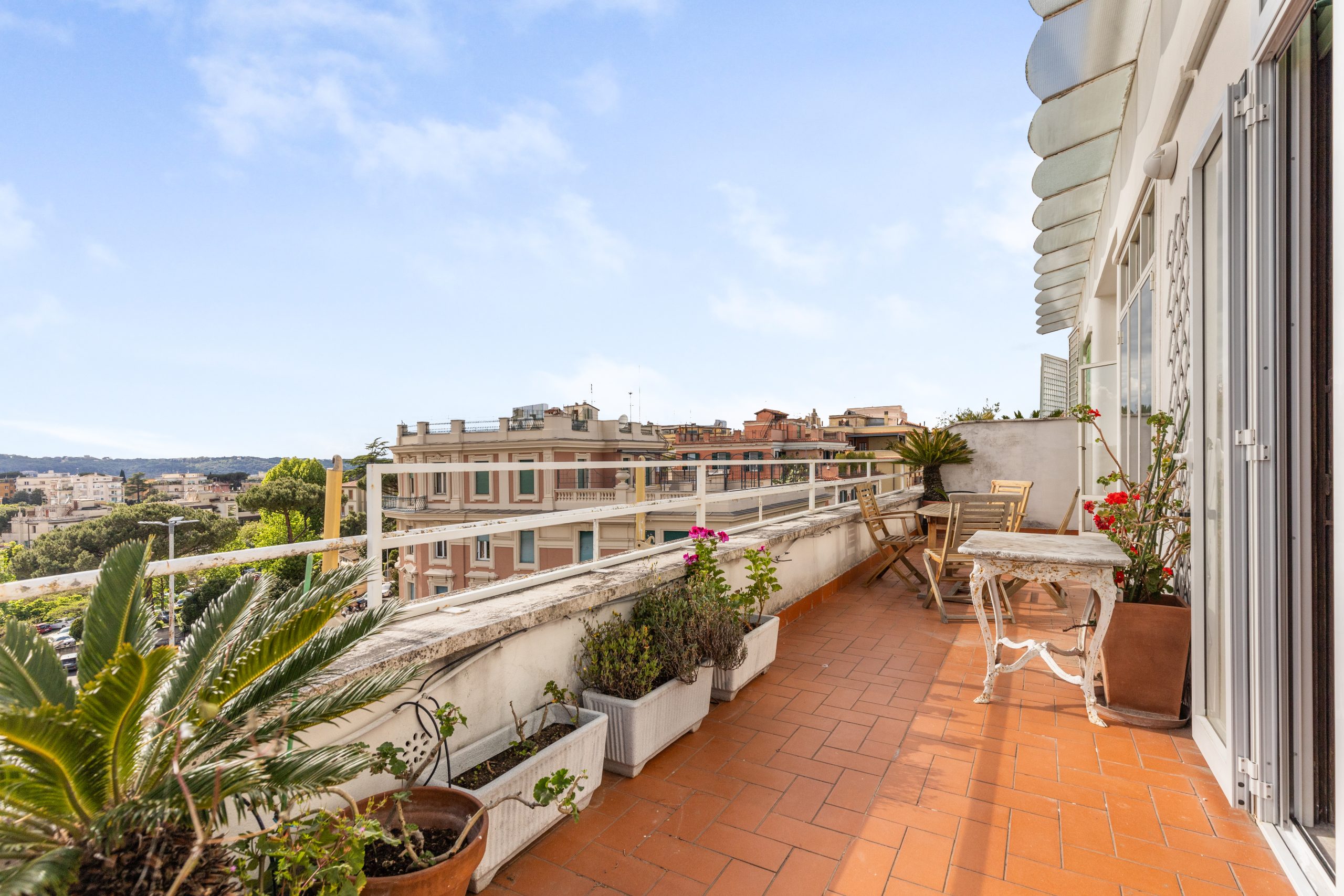In una delle posizioni più alte e panoramiche dei Parioli, all’ interno della riservata cornice di Piazza Digione, sorge un attico unico per fascino e prestigio. Un’abitazione dallo stile classico e senza tempo, con affacci spettacolari su tutta Roma. Con circa 207 mq interni, questa residenza colpisce sin dal primo sguardo: la tripla esposizione a Est, Sud e Ovest inonda gli ambienti di luce naturale durante tutto l’arco della giornata, mentre un magnifico terrazzo perimetrale di circa 50 mq si apre come un salotto a cielo aperto, regalando una vista straordinaria su Roma. All’ interno, l’eleganza classica si rivela in ogni particolare: un ampio salone doppio con camino in marmo, parquet intarsiato d’epoca, stucchi originali in gesso, una sala da pranzo di rappresentanza, cucina abitabile, tre camere da letto e due bagni, uno con vasca, l’altro con box doccia. Tutti gli ambienti godono dell’accesso diretto al terrazzo, per un’esperienza abitativa che unisce interni di charme a spazi esterni da vivere tutto l’ anno.