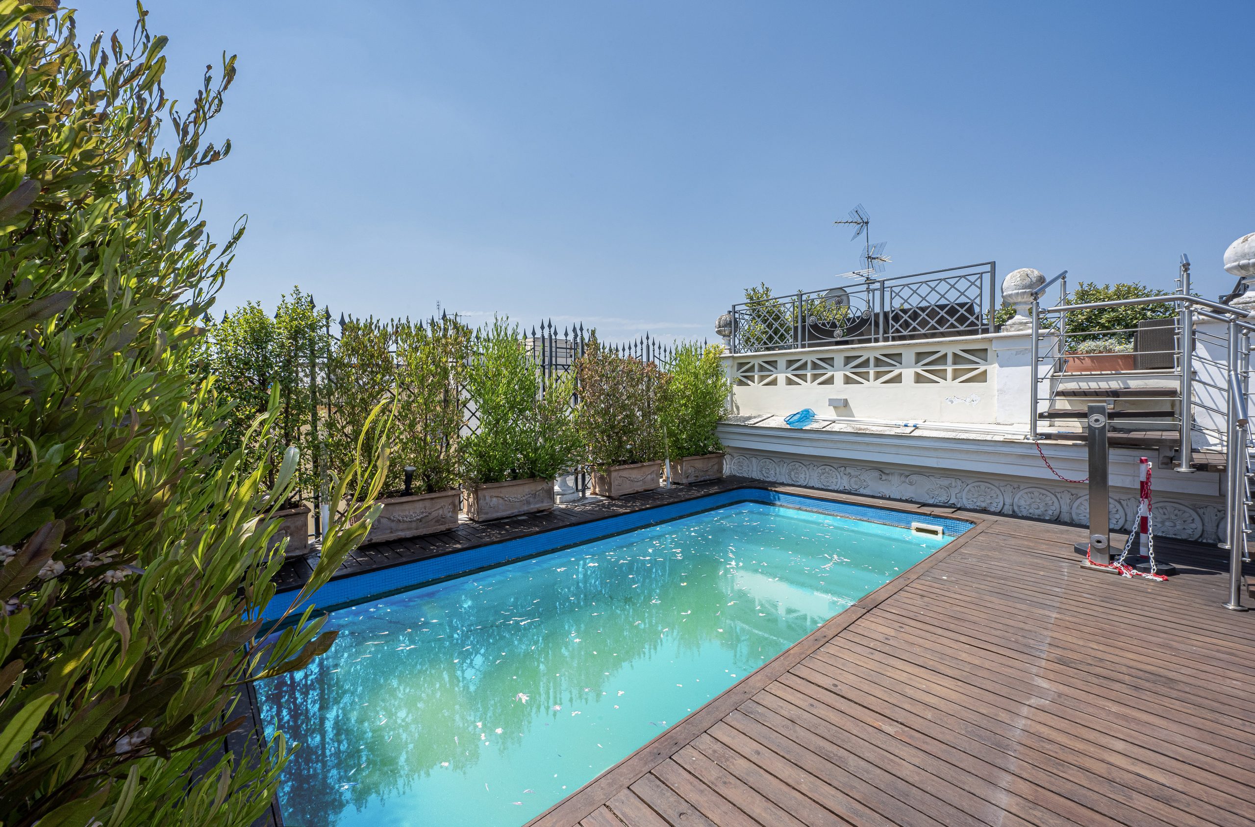 L’arredamento di pregio, le finiture di alta qualità , i pavimenti in cristallo che filtrano luce dalla scala elicoidale e l’accesso al roof garden con piscina rendono questa proprietà unica ed esclusiva.