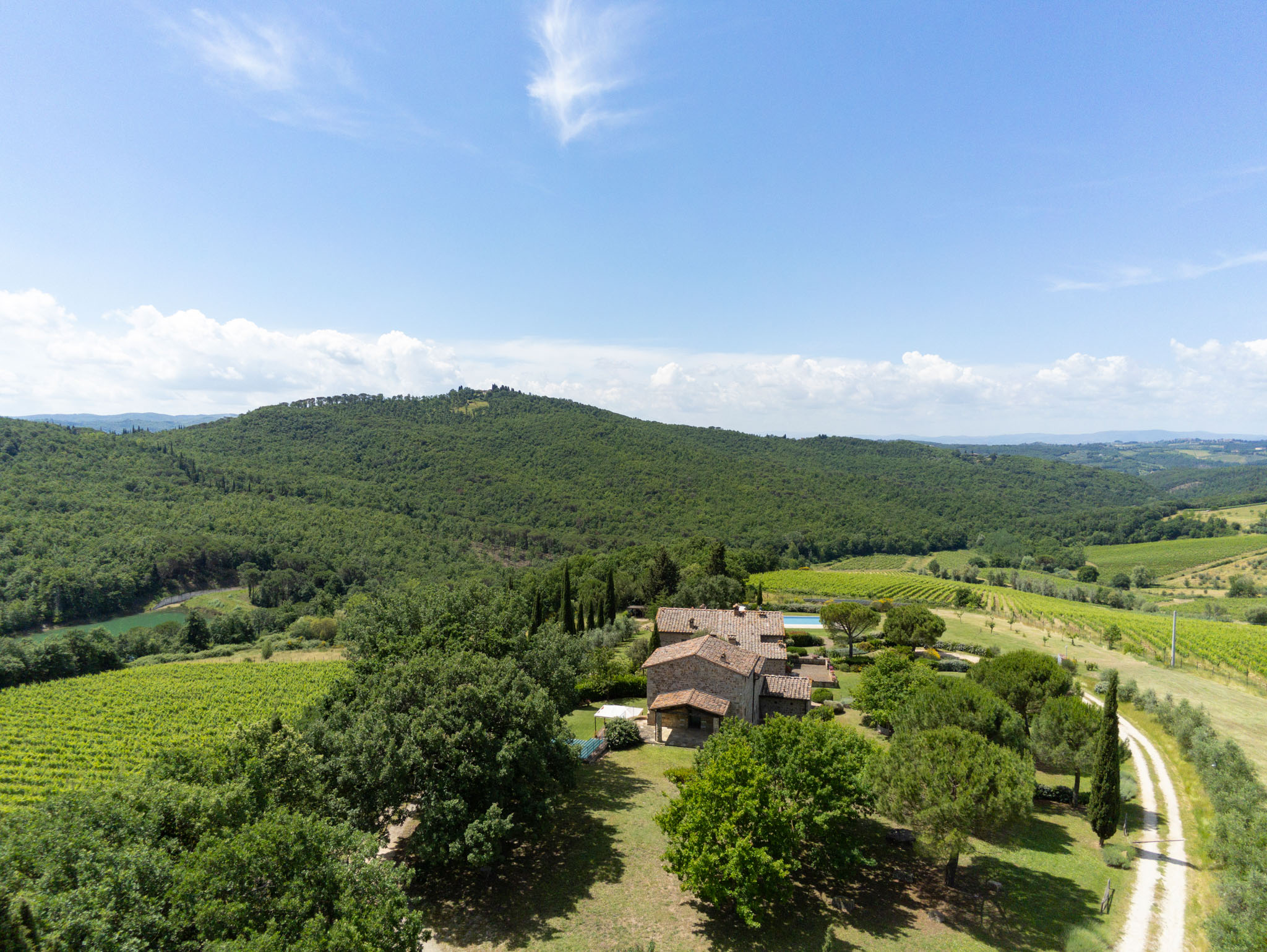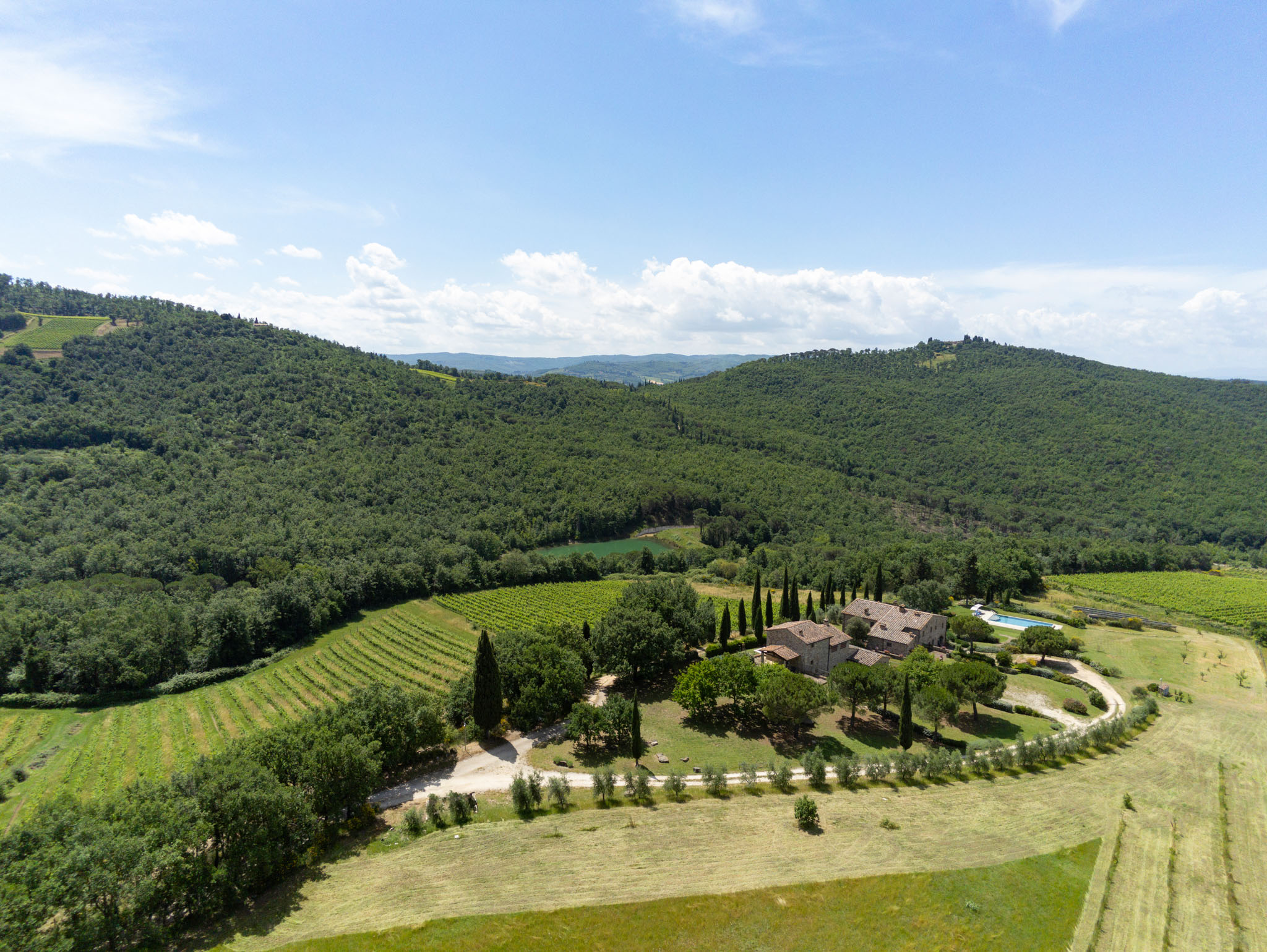 La proprietà comprende inoltre circa 87 ettari di terreno, suddivisi tra boschi e uliveti e un vigneto piantato nel 2001 per la produzione di Chianti Classico, offrendo un’opportunità unica per vivere immersi nella natura e nella tradizione vitivinicola toscana.