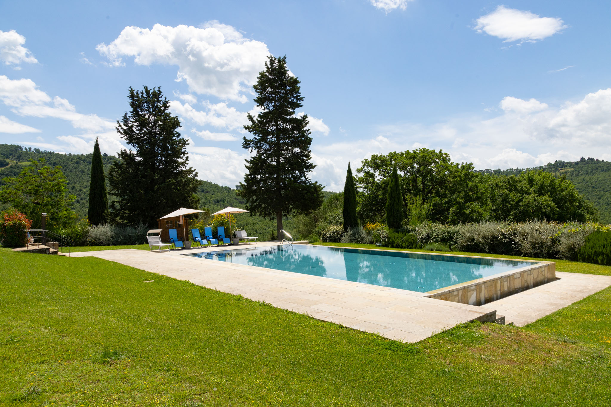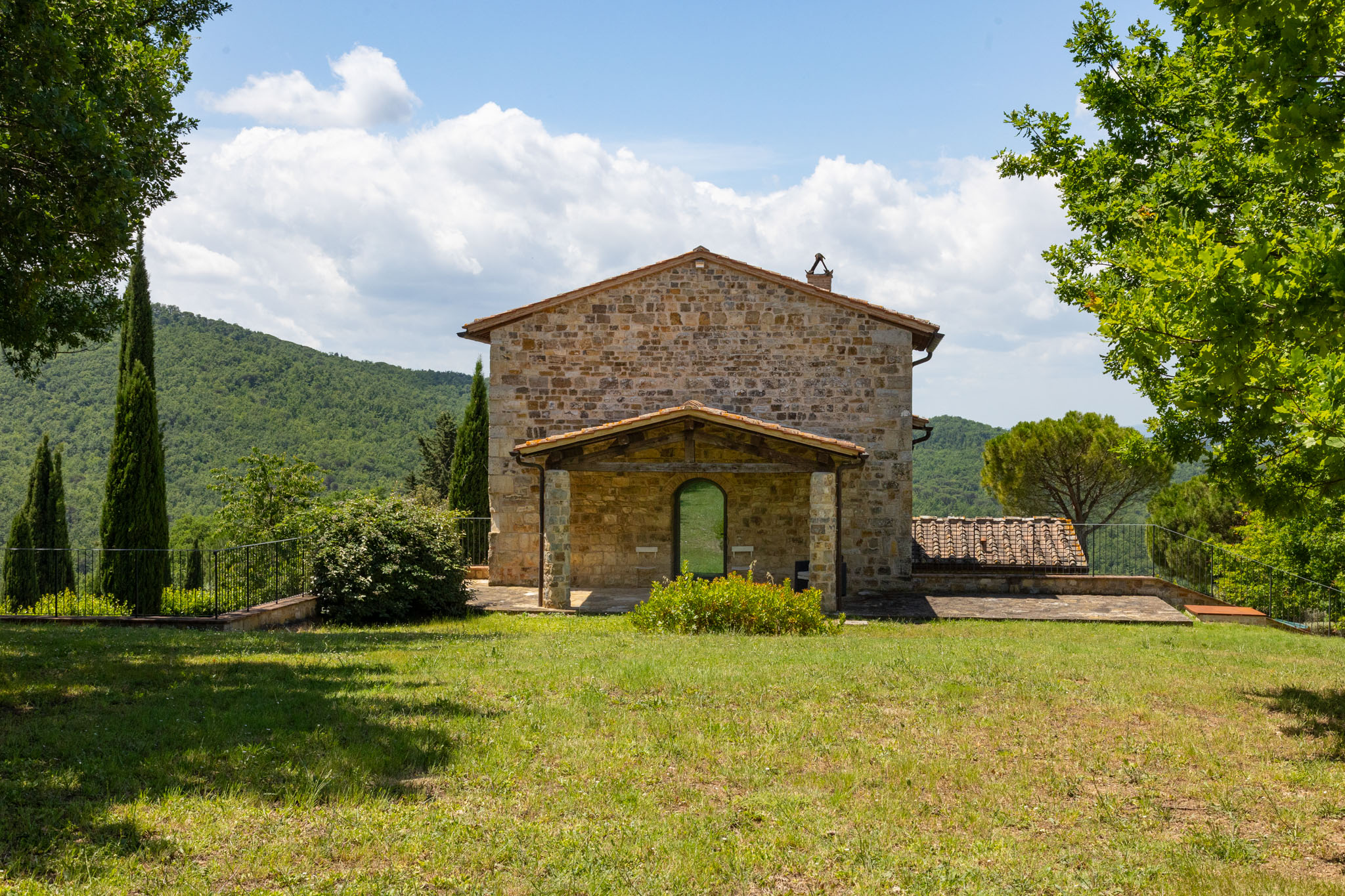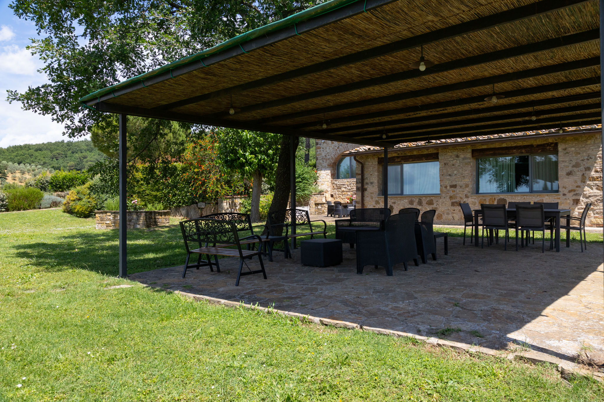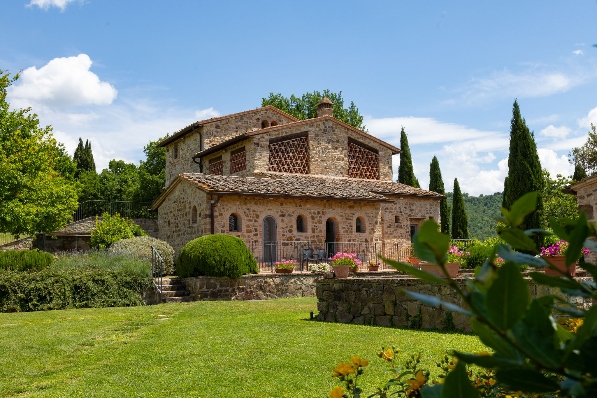 Circonda il nucleo un’area di pertinenza di circa un ettaro, che ospita una splendida piscina con vista mozzafiato sulle dolci colline circostanti e sulla bellissima abbazia.